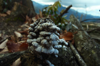 ナラなどの大木の根際に生える独特のキノコ。