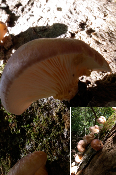 これとそっくりなヒラタケがいわゆる「シメジ」らしいんです。本当かなー(^^;