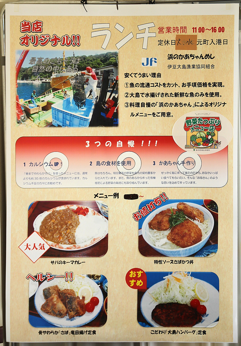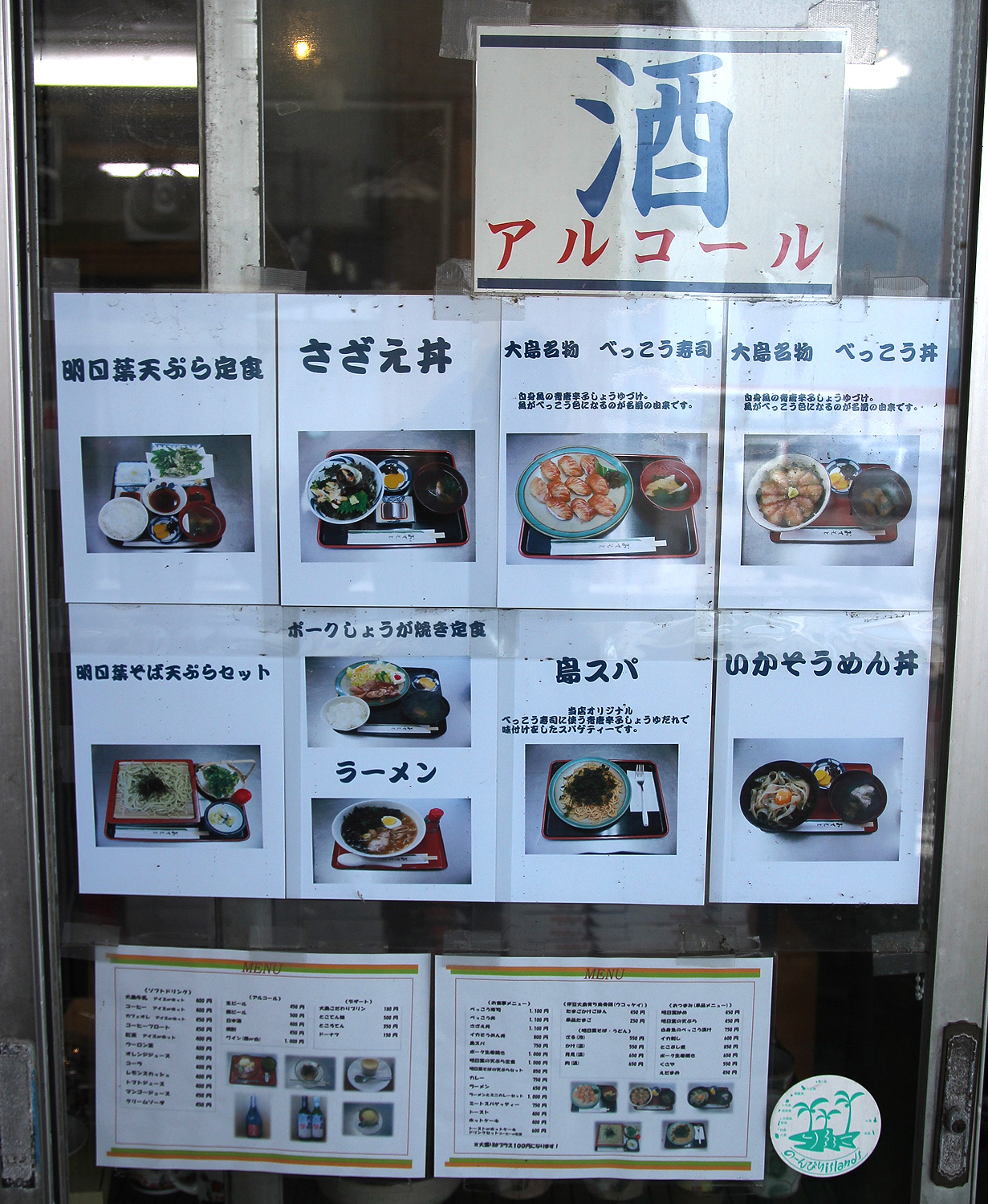 店外のメニューを見ると、島寿し(べっこう寿司)や、べっこう丼も食べる事が出来るんですね。値段もそんなに高く無いし、これは嬉しいです。
