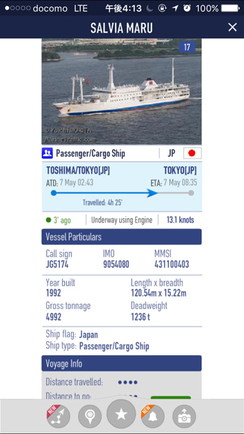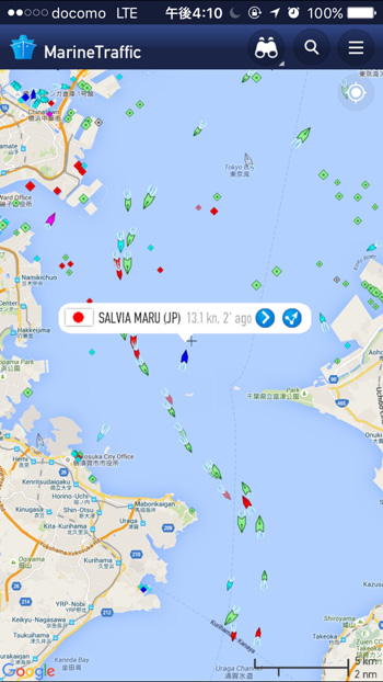 このアプリをみながら、無線をすると、無線で聞こえてくる船が走っていたりして、なかなかおもしろいです。