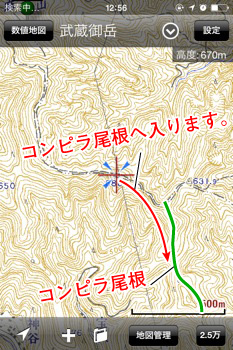 今日は、金比羅尾根の上にある、マイナーピーク『富士見台』を狙っているので、 ある程度歩いたら、地図と照合して山を探しながら歩きます。
