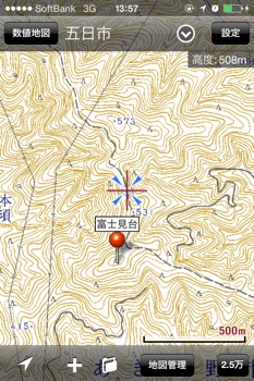 GPSで位置を合わせながら、富士見台の場所を探ると、