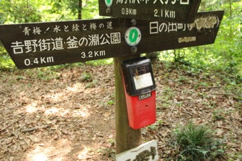 この峠の道標にはポストが設置してあります。