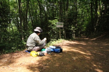 ガードレールの隙間に山へ入る脇道が伸びていたので、そこから三度山へ入ります。