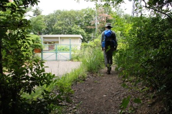 道は平らで歩きやすい。 歩いていたら、後ろからマウンテンバイクが走ってきた。 マウンテンバイクの人が「あと3台きます!」と声をかけてくれる。 道を外して待っていると、次々と自転車が走っていった。 マウンテンバイクの人はハイカーに対する声掛けが徹底されている。