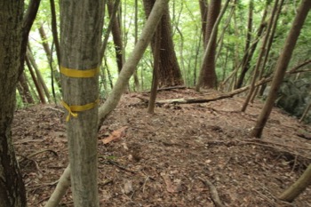 しかし下る方角にも黄色や赤のテープが巻いてありました。