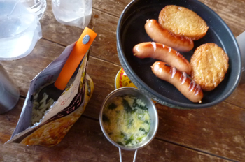 朝は、力をつけるために、残ったものをどんどんお腹に入れておいた。