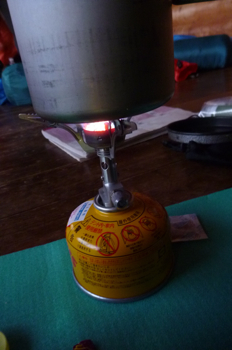 避難小屋に残された道具がすごいです、全身UL装備って感じです。