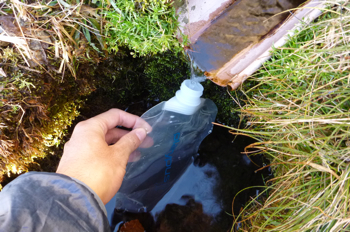 そして、小屋の前で水を補給します。