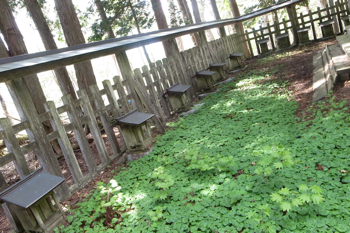柵の中にはいっぱい祠が並んでいる。
