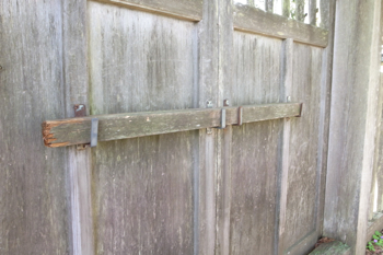 柵に守られた神社。