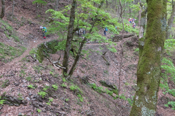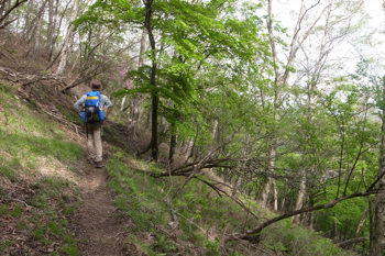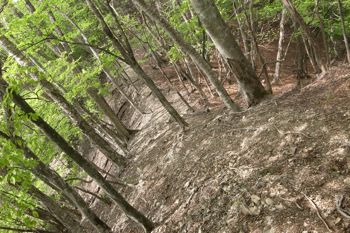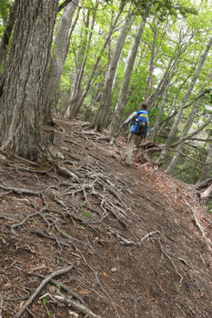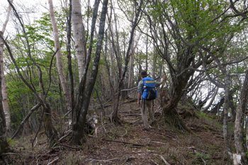 細ーい道を地味に登る。