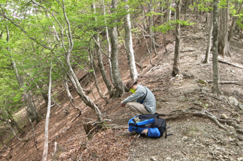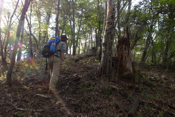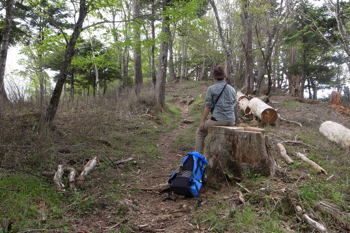 途中の切り株に腰を落として休んだりして。